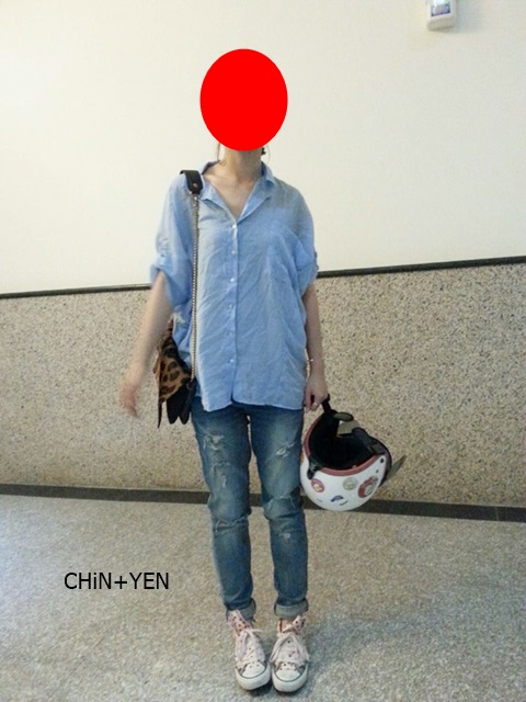 舒服藍色襯衫+破損牛仔褲