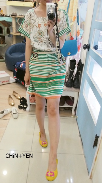 今天非常海洋風!!! 這是一套的 配好很方便 有胸針跟一條腰帶